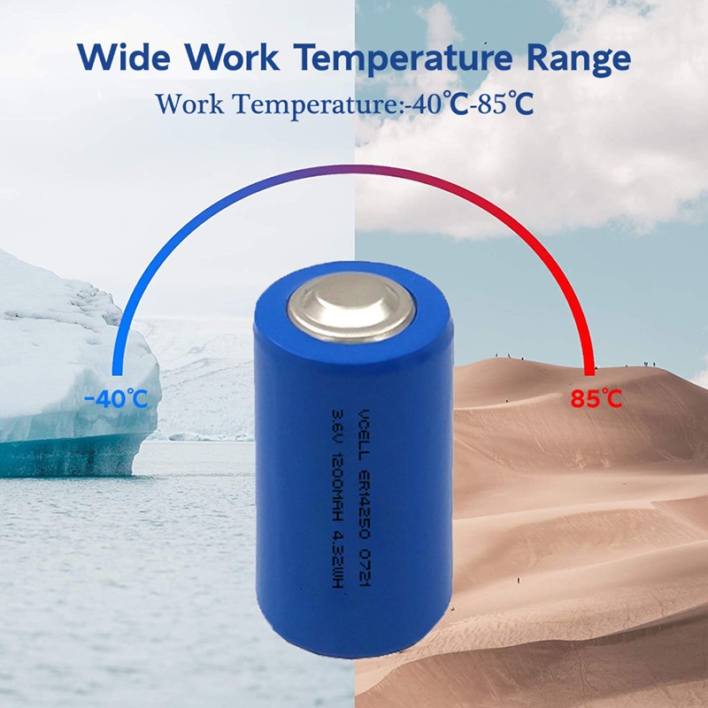 Первичный литиевый аккумулятор VCELL POWER 7,2 В, 2200 мАч ER14505-2S состоит из двух силовых элементов Li-SOCL2 ER14505M, соединенных последовательно, обеспечивающих выходное напряжение 7,2 В и емкость 2200 мАч. Он прекрасно сочетает в себе преимущества высоковольтной платформы с большой емкостью. Чрезвычайно низкая скорость саморазряда (годовая скорость саморазряда менее 1%) позволяет аккумулятору сохранять срок хранения более 10 лет при комнатной температуре, что делает его идеальным для устройств, требующих длительного питания и не подлежащих частой замене. Его надежность и длительный срок службы делают его идеальным для таких приложений, как интеллектуальный учет, удаленный мониторинг и резервное питание. Диапазон рабочих температур от -40°C до +85°C демонстрирует его способность адаптироваться к экстремальным условиям.
